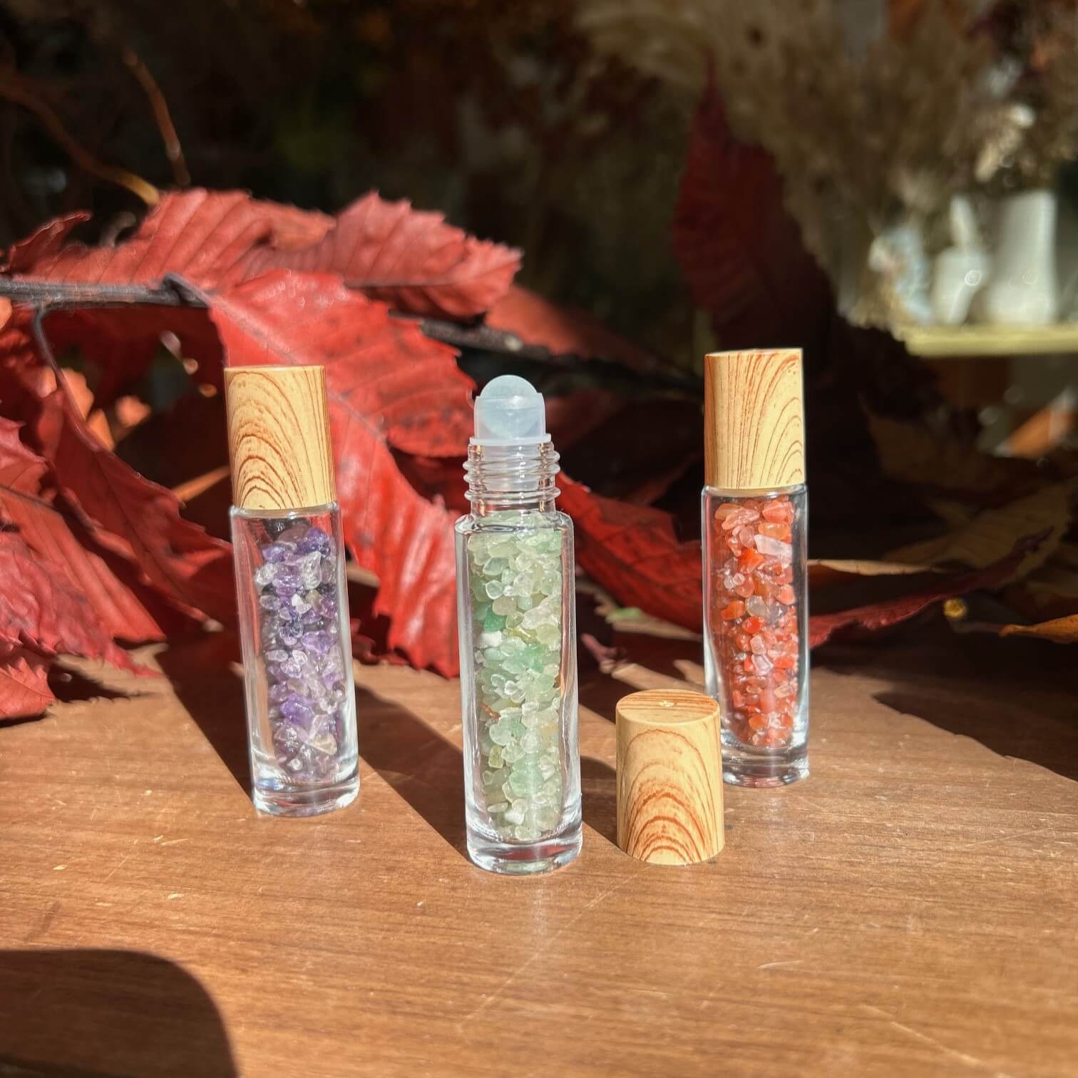 Alliant esthétisme et énergie naturelle, ce roll-on en verre transparent est rempli de pierres. Parfait pour vos mélanges d’huiles essentielles ou vos créations parfumées, il transforme chaque application en un véritable rituel sensoriel.