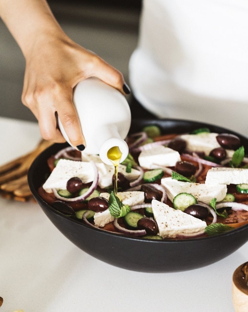 L'huile d'olive est un élément vital méditerranéen. Assurez-vous de la conserver comme elle devrait être conservée dans de magnifiques bouteilles d'huile d'olive fabriquées par des artisans entourés de superbes jardins près de la mer Méditerranée