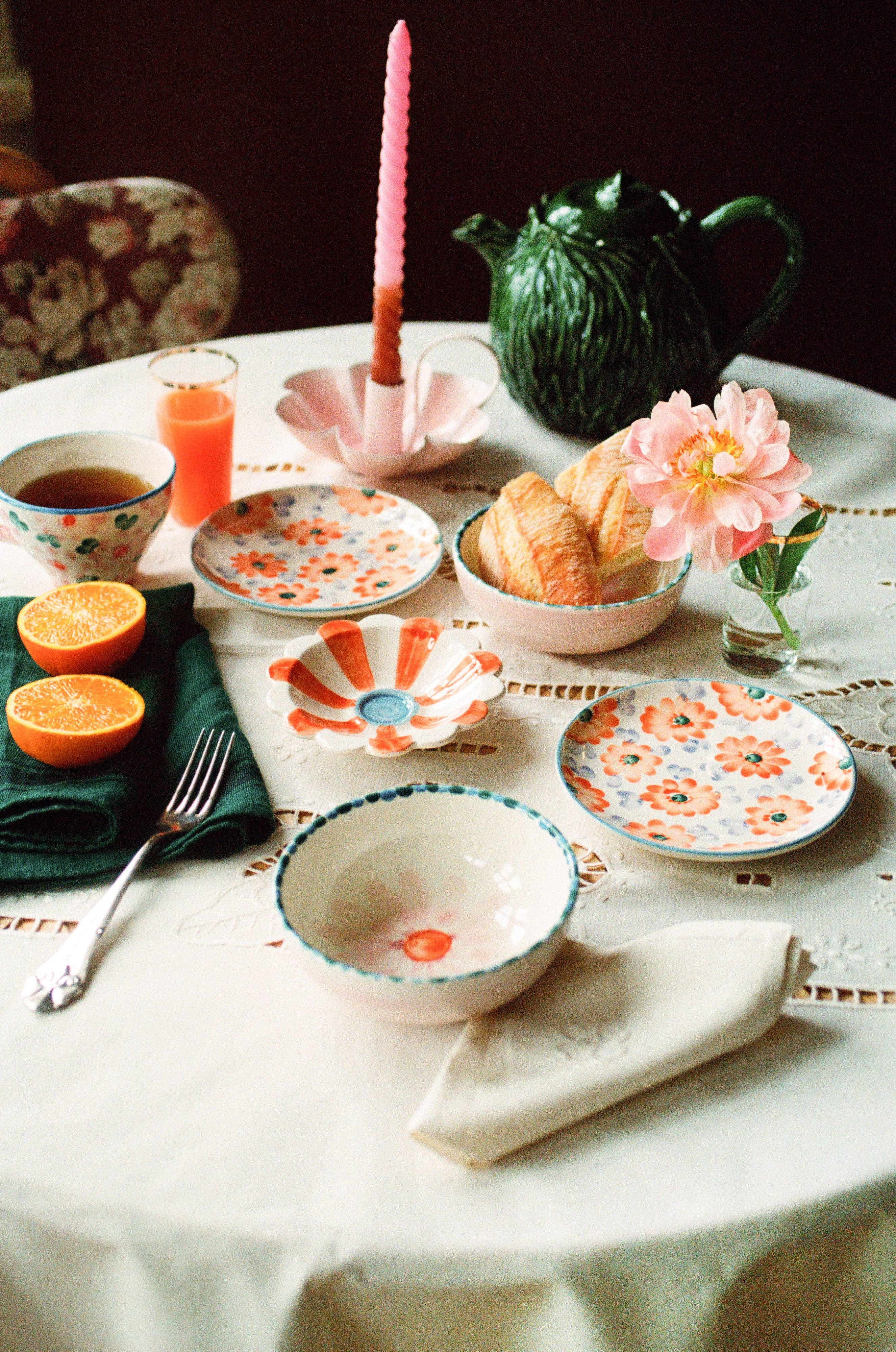Nous avons appelé cette magnifique série "Peinte à la main" car elle est fabriquée et peinte à la main par des femmes extraordinaires au Portugal. Gérée par des femmes, cette entreprise s'occupe de chaque aspect de la production — de la peinture à la cuisson en passant par l'emballage — garantissant une touche véritablement artisanale dans chaque création.
