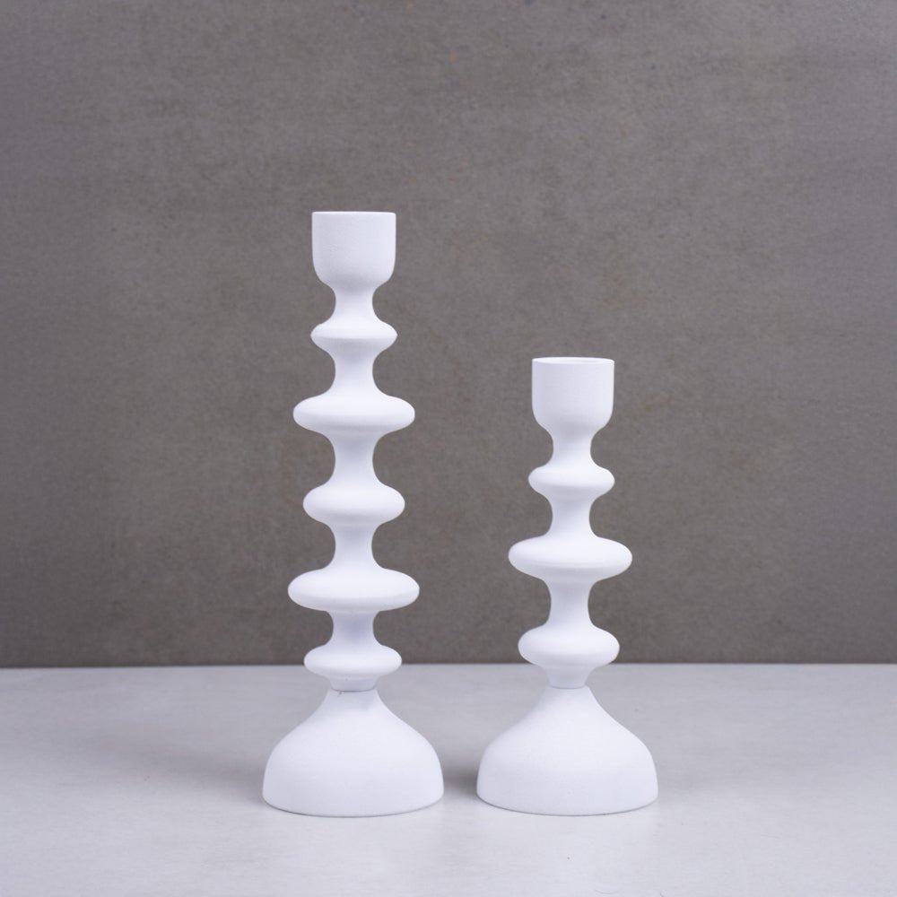 Apportez une touche de lumière douce et élégante à votre décoration intérieure avec ces chandeliers en métal texturés blanc. La finition matte et la texture subtile offrent un contraste raffiné avec la lueur de la flamme, créant une ambiance chaleureuse et apaisante. Disponible en 2 grandeurs.