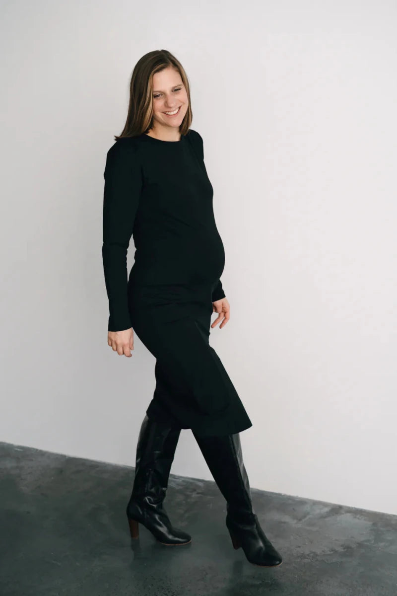 Cette robe fait autant office de petite robe noire pour le restaurant ou un cocktail... et elle vous suivra avec beaucoup d'élégance lors de votre grossesse... et même après.