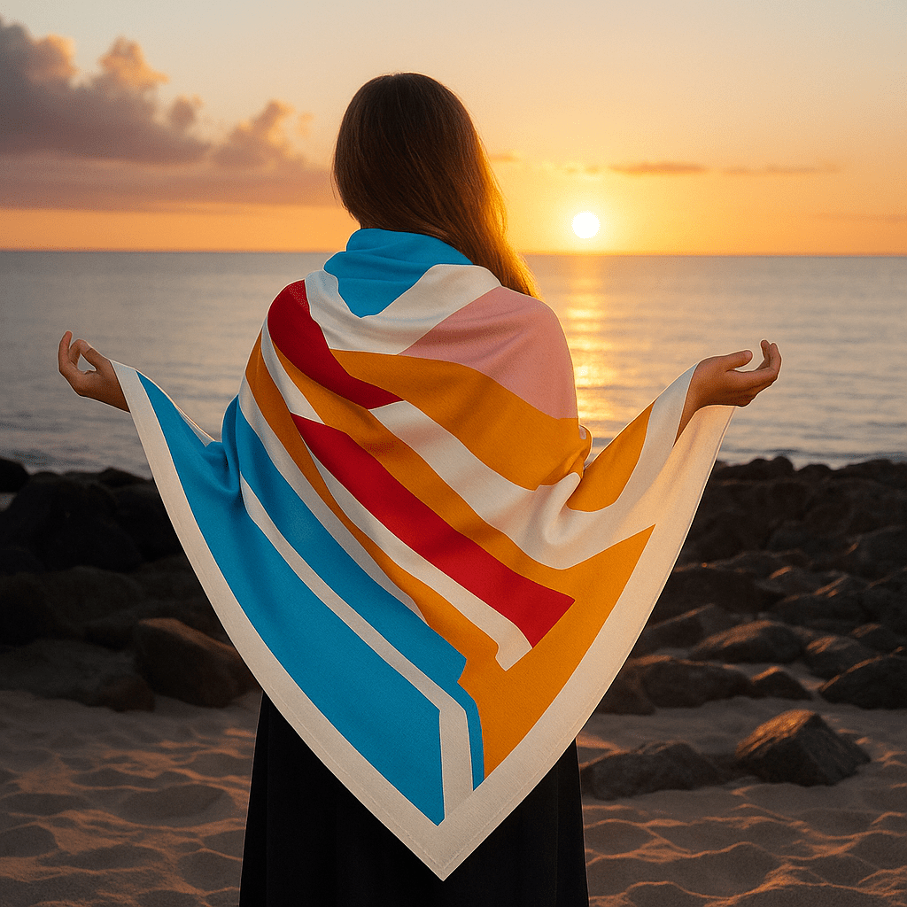 Réalisés en 100 % polyester recyclé et conçus sans rejet d’eau, nos foulards maxi allient beauté, conscience écologique et qualité.