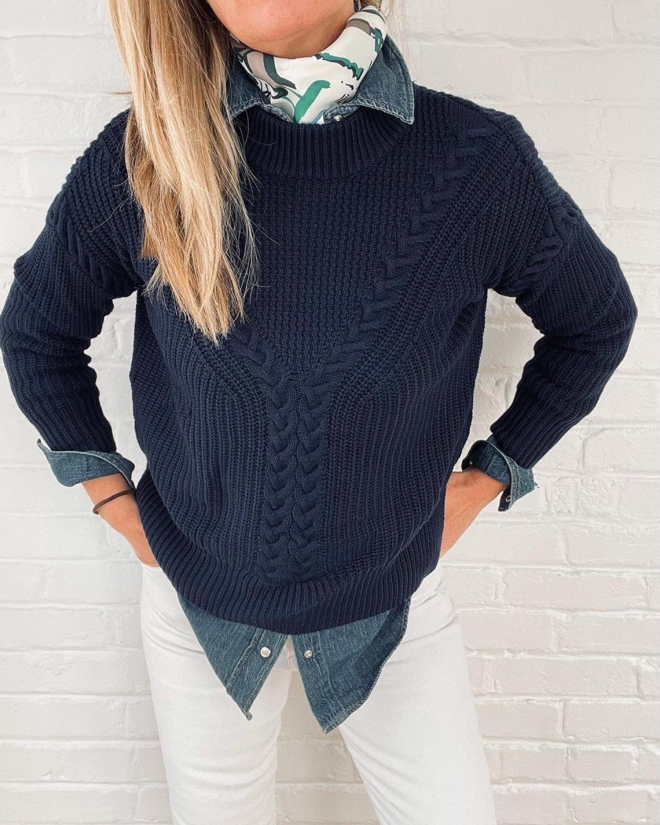 Le pull Kokino de Lele De Baltzac est une interprétation contemporaine du pull à torsades. Il présente une silhouette carrée agrémentée d’un motif en V sur le devant. Il est également doté d’épaules raglan, de fentes sur chaque côté et d’un col rond épais. Le mélange contenant du cachemire vous gardera bien au chaud tout l’hiver !