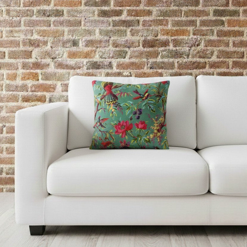 Coussin Paradis en velours aqua - boutique décoration Montreal