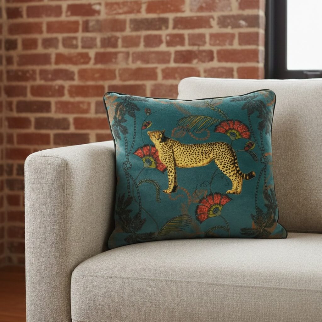 Coussin Tropica guépard bleu canard - boutique décoration Montreal