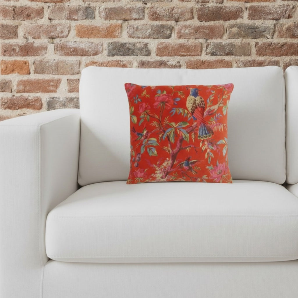 Coussin Kushiro corail brodé de grues blanches - boutique décoration Montreal