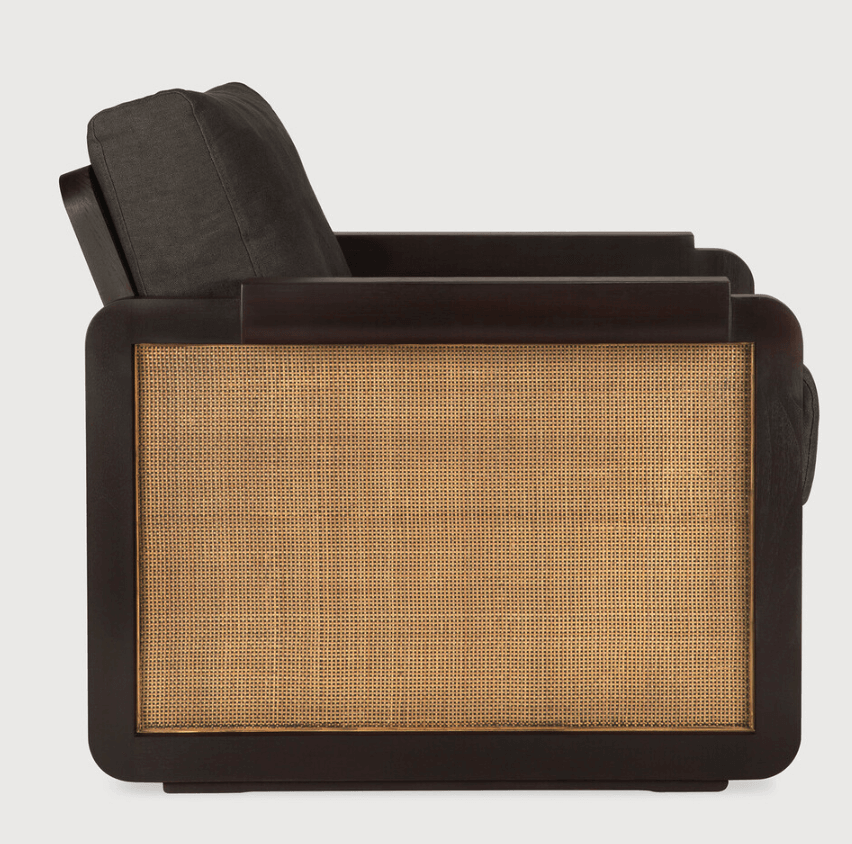 Fabriqué en teck teinté brun foncé avec une finition vernie, ce fauteuil allie robustesse et élégance. Ses détails en rotin coloris Roasted apportent une touche naturelle et chaleureuse, tandis que les housses de coussin en 100 % lin garantissent confort et douceur. La mousse haute densité assure un maintien optimal pour un usage durable. Disponible en pré-commande avec un délai de livraison de 4 à 8 semaines, ce fauteuil est idéal pour sublimer votre espace tout en bénéficiant d’un confort exceptionnel.