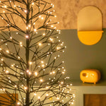 Arbre épuré aux lignes fines et lumières douces. Chaque branche se termine par une lumière en LED.