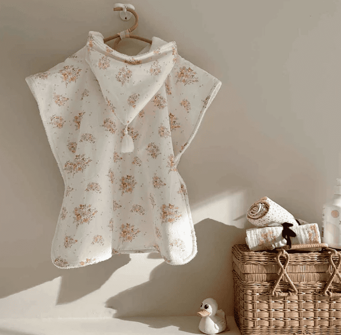 Le poncho de bain Suzon en éponge sera parfait pour sécher vos minis à la sortie du bain. Vos enfants vont adorer s'emmitoufler dedans! A utiliser également pour les sorties à la plage ou à la piscine.